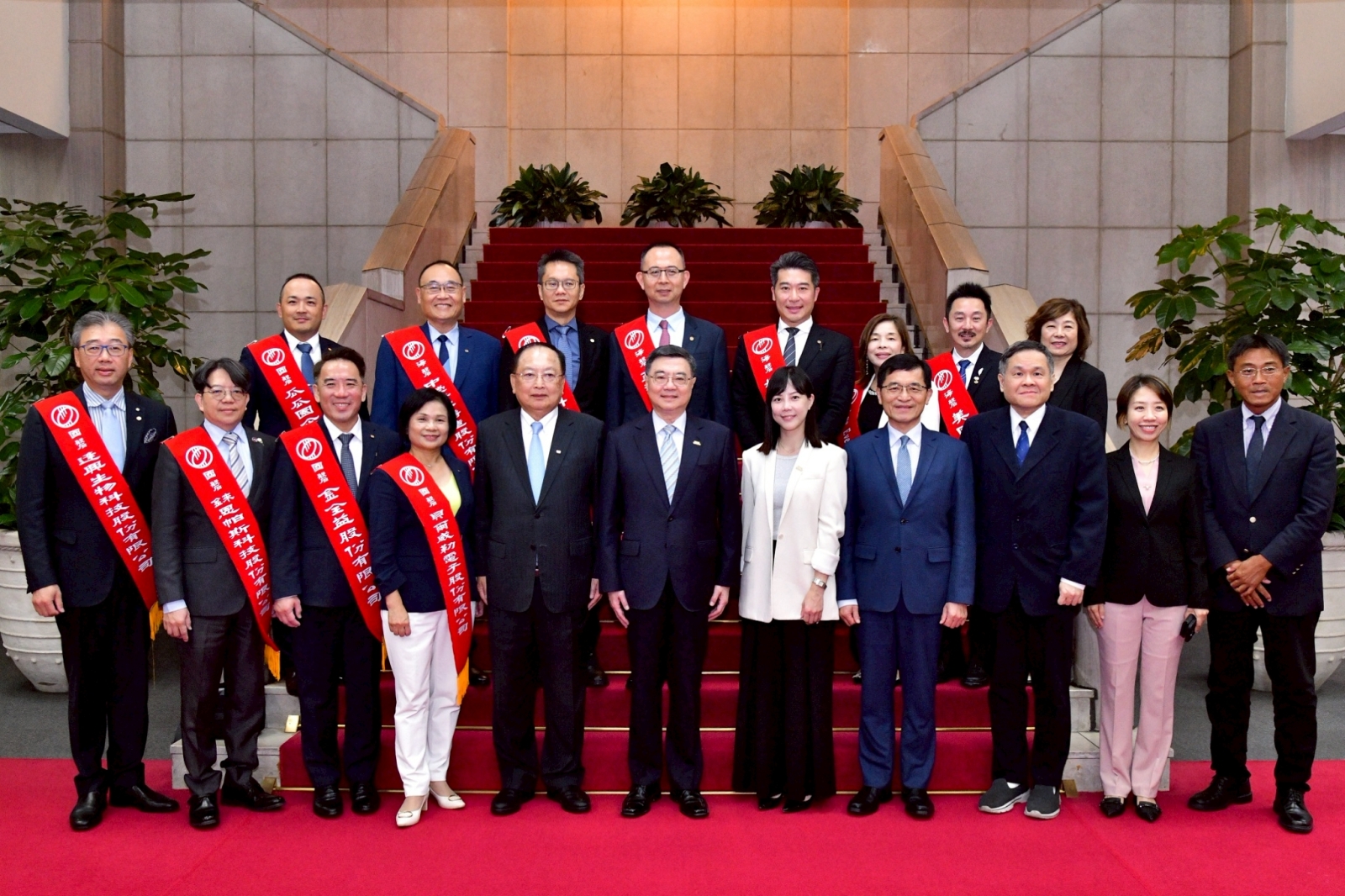 訪團一行由李理事長率領,經濟部何晉滄次長、勞動部李健鴻次長、僑務委員會李妍慧副委員長陪同,前來行政院拜會卓院長,行政院李慧芝發言人也在座。